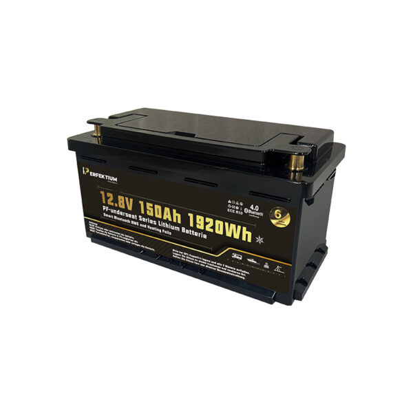 Perfektium PF SERIES lithiumbatteri LiFePO4 12.8V 150Ah HEAT Smart BMS med Bluetooth, bobilbatteriet under setet med varme.
